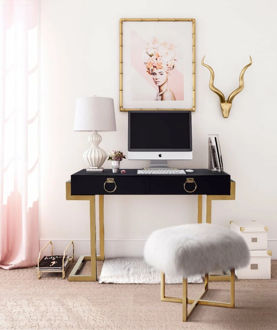 Inspired by luxe Hollywood decor, the Elza Desk is the ultimate statement piece. The gold handles pop against the high-gloss black base. Add this piece to your room to crank up the glamour.