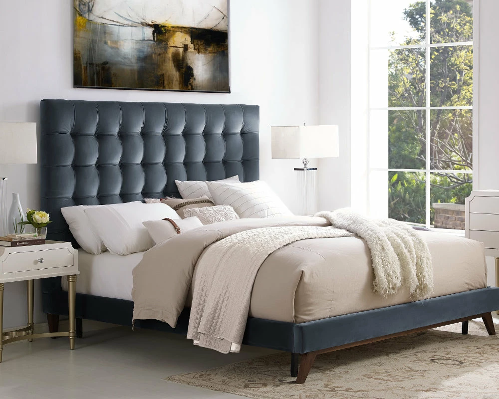 Drawing inspiration from vintage-classic design, we introduce the Keane Bed. Carefully-aligned button tufting and rich velvet color options bring sophistication and charismatic personality to the bedroom. Retro styled legs flaunt an interesting twist to this otherwise classic piece.