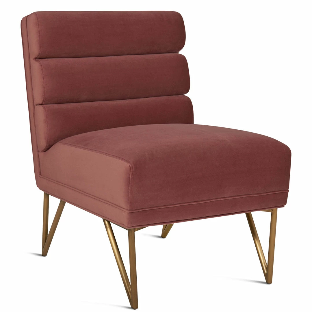 With a channel tufted upholstered back and modern angled brushed gold legs the Leonie Armless Chair slips perfectly into any stylish space.