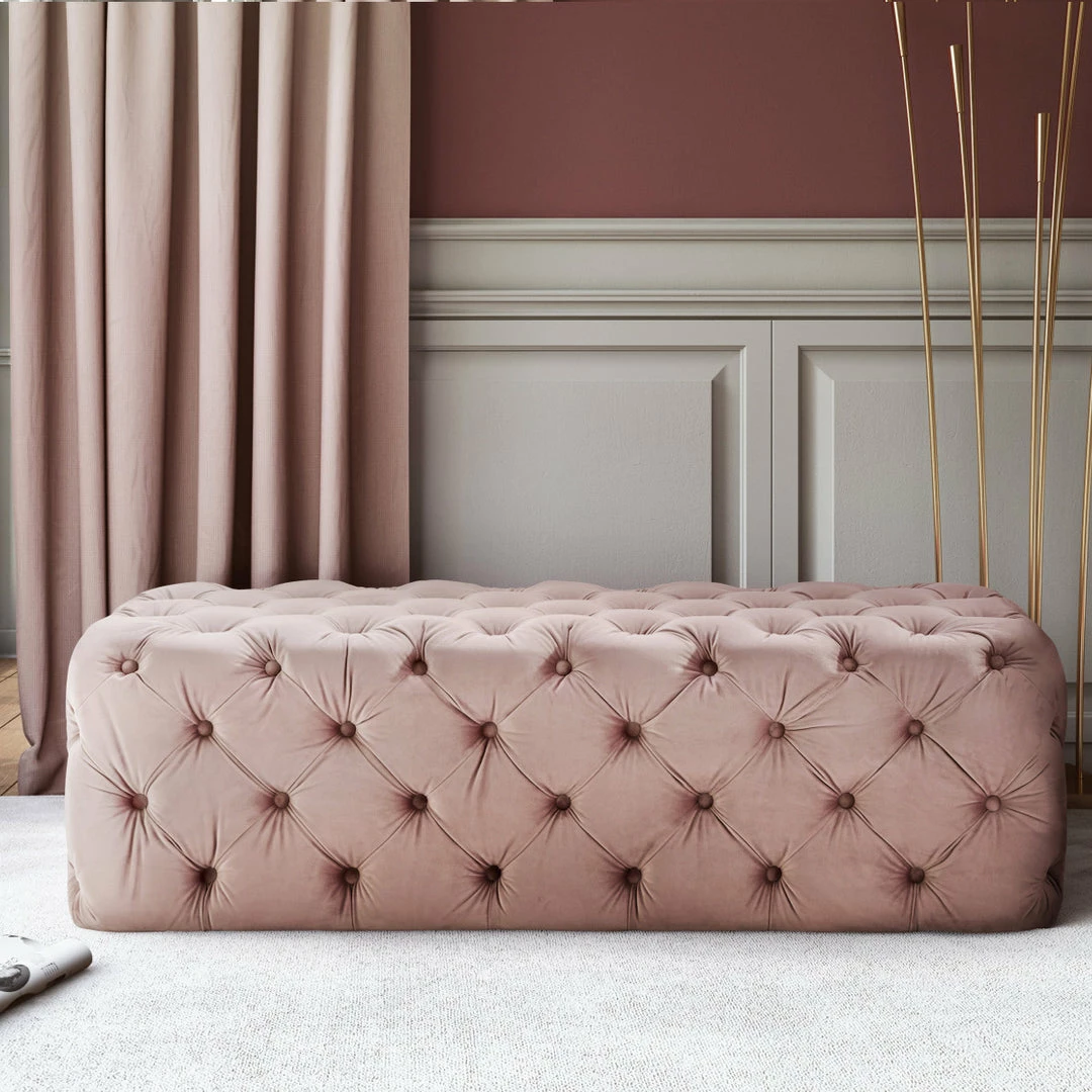 Entertain with this jumbo ottoman in gorgeous velvet upholstery. Classic tufting from all angles, solid wood foundation, crafted by skilled artisans make the Monica Ottoman a timeless contemporary piece both comfortable and durable.