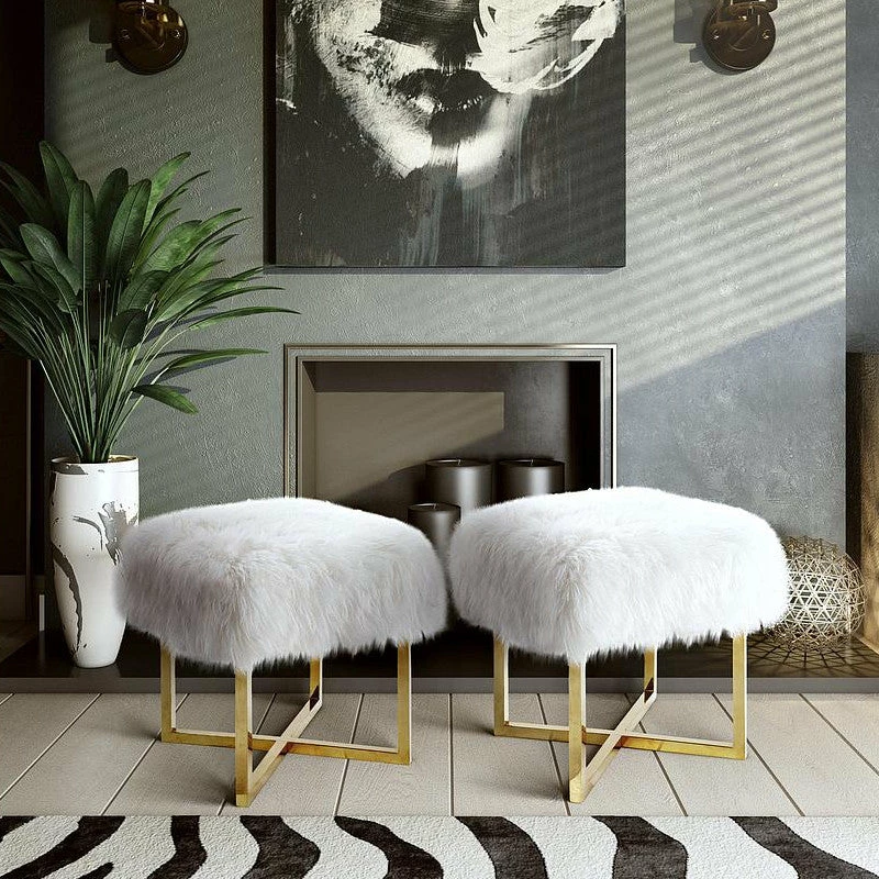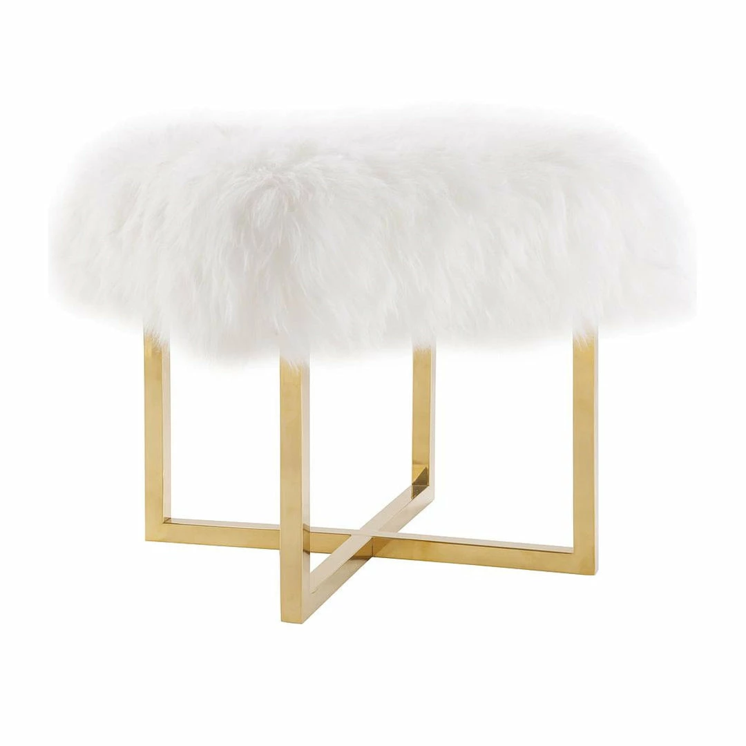 Made with genuine sheepskin, the Naomi bench is the perfect chic accessory that is versatile for a verity of uses and spaces. The fabulously fluffy top is perched upon a shapely gold stainless steel base. We love how this small-scale piece makes such a large-scale statement in any room.