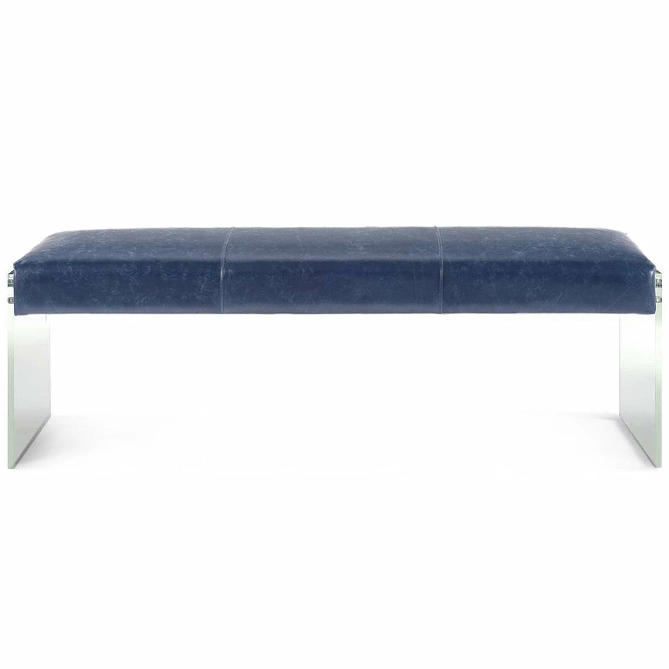 The Oscar Antique Blue Leather and Acrylic Bench exudes modern design and appeal. The clear acrylic legs offer a dramatic look to the simple shape, while the plush seat is upholstered in a soft bonded leather. This is a must have if you are looking to add eye catching style to any space.