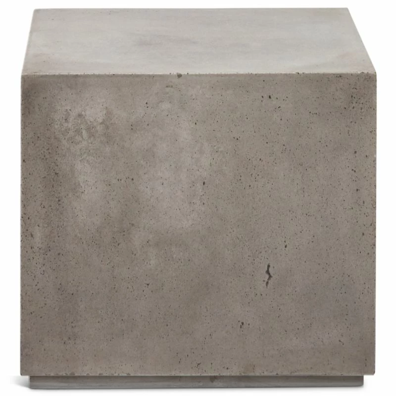 This contemporary concrete block end table smooth surface serves as a tabletop, a seat, or a display stand. Available in an Ivory White, or Dark Gray Concrete.
