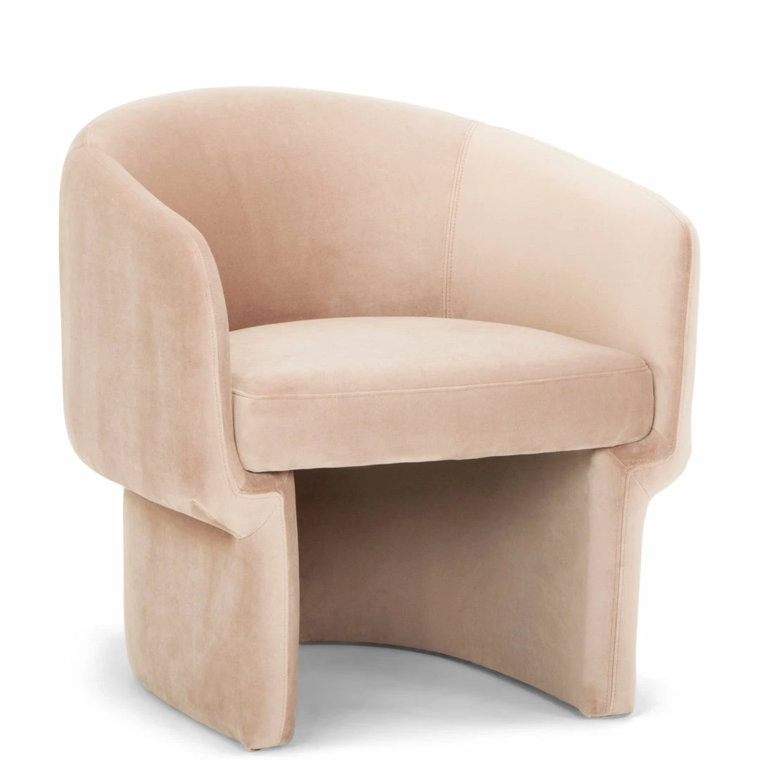 Inspired by innovative avant-garde architecture, the curved form of the Dita Chair creates a unique approach to seating. Fully covered in plush velvet upholstery, this petite chair is perfect for those wanting to addΒ softΒ color to any space.