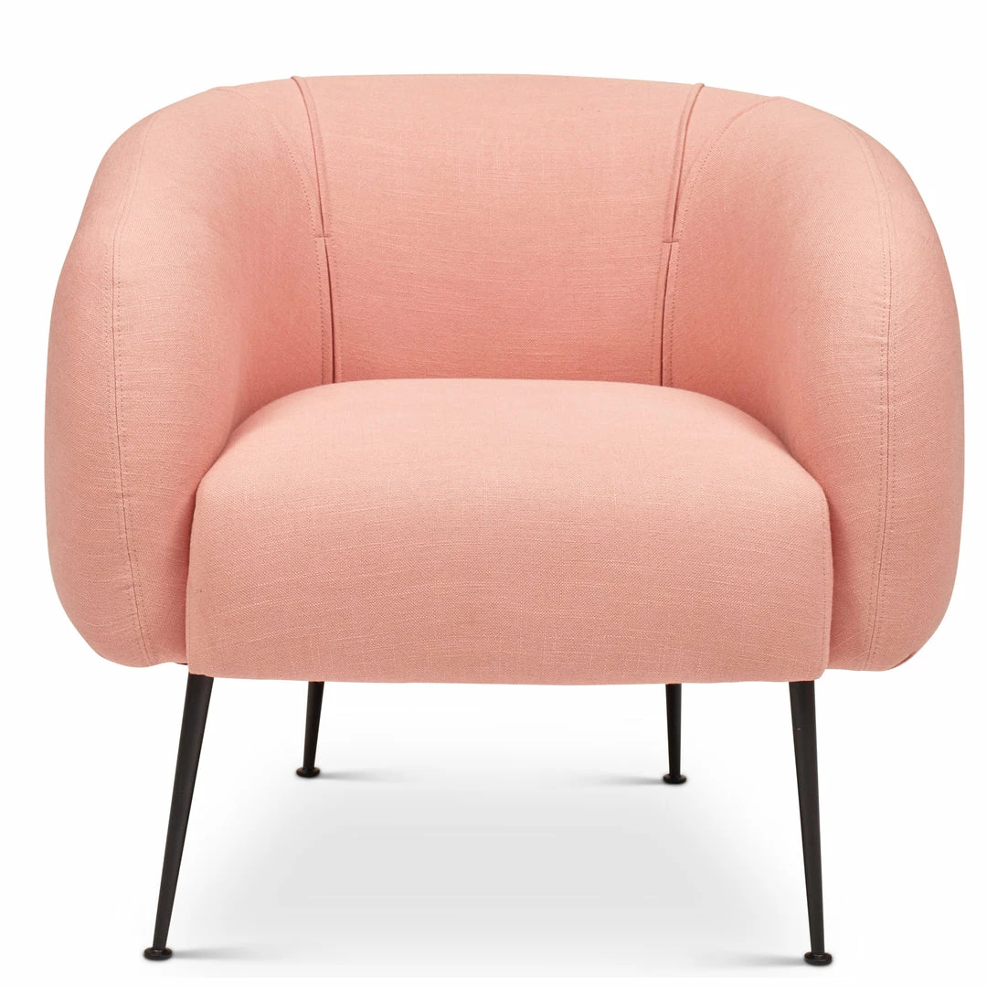 The generous cushion, curvaceous barrel silhouette, and slim metal legs offers hints of mid-century modern glam from every perspective. The Sepli Chairย bright linen-blend fabricย provide comfortย on sturdy matte brass metal legs. Made from solid pine, a firm Dacron fill, the Sepli is durable and comfortable.