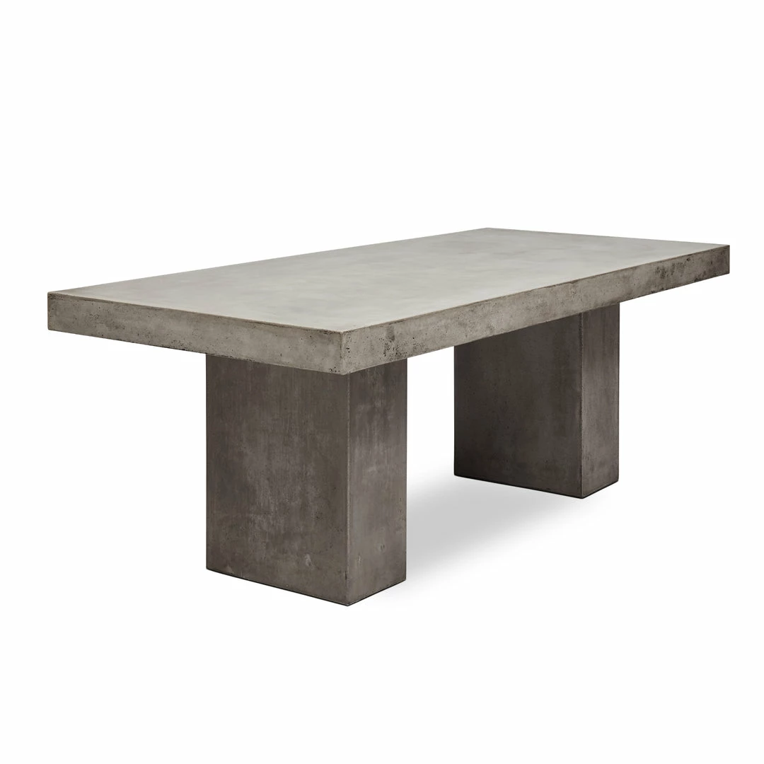Solid and stately, this industrious dining table is comprised of fiber-reinforced creating a modern foundation for entertaining This unique blend of granite stone powder, natural jute fibers, and Portland cement is sealed for a vast smooth surface and solid finish. Pair it with bright organic colors or stick with more earthy tones for a classic, timeless look. Made of fiber-reinforced concrete the dining table is suitable for indoor or outdoor use. Overtime this conversational piece will develop a unique patina and personality, reflecting the evolutionary nature of its industrial material.