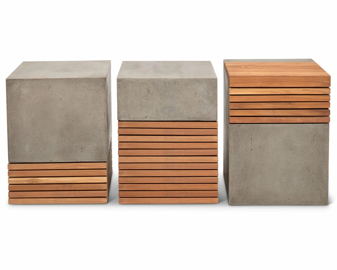 An contemporary industrial design, the Kobe concrete teak stool combines forces with solid fiber reinforced concrete fitted with slated teak rungs. The stool’sย eclectic mix of organic and urban characteristics pairs well with minimalist decor, household plants and can double as an accent table lending a natural ambiance to most decor. Coordinate it with other pieces from the same collection, whatever your design scheme this versatile teak and concrete stool can bring your interior space to the next level. Suitable for outdoor use.