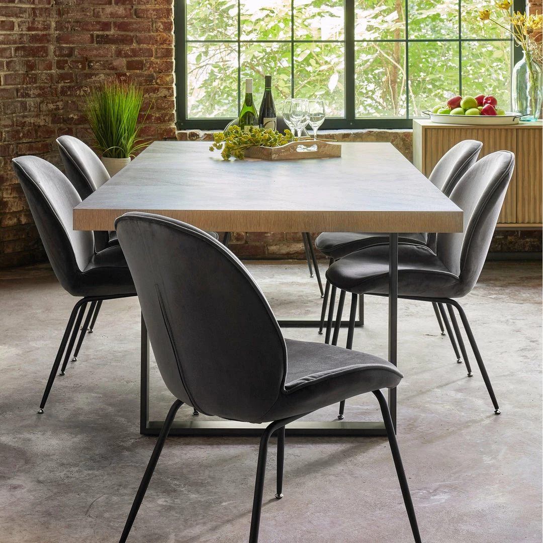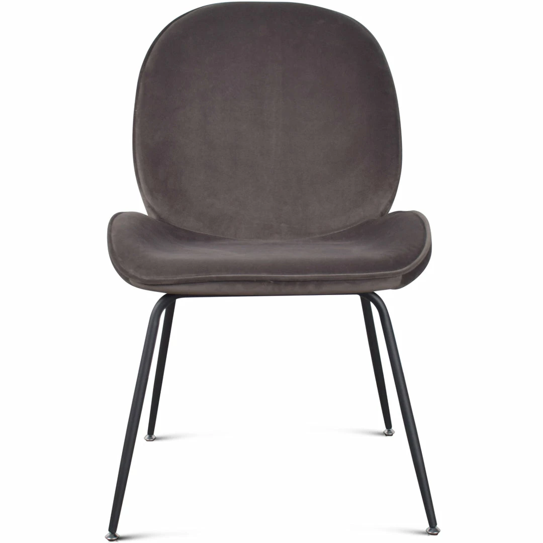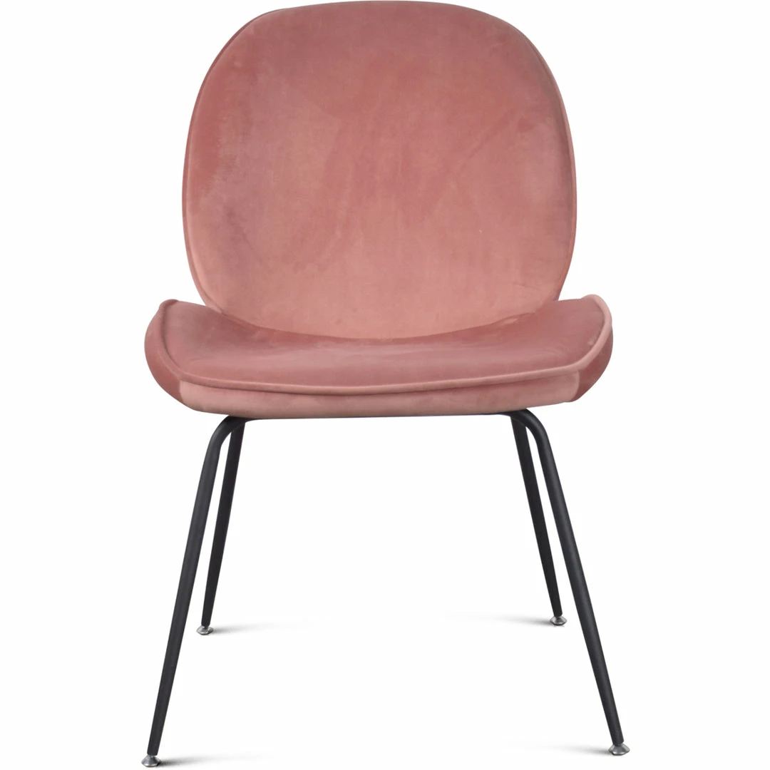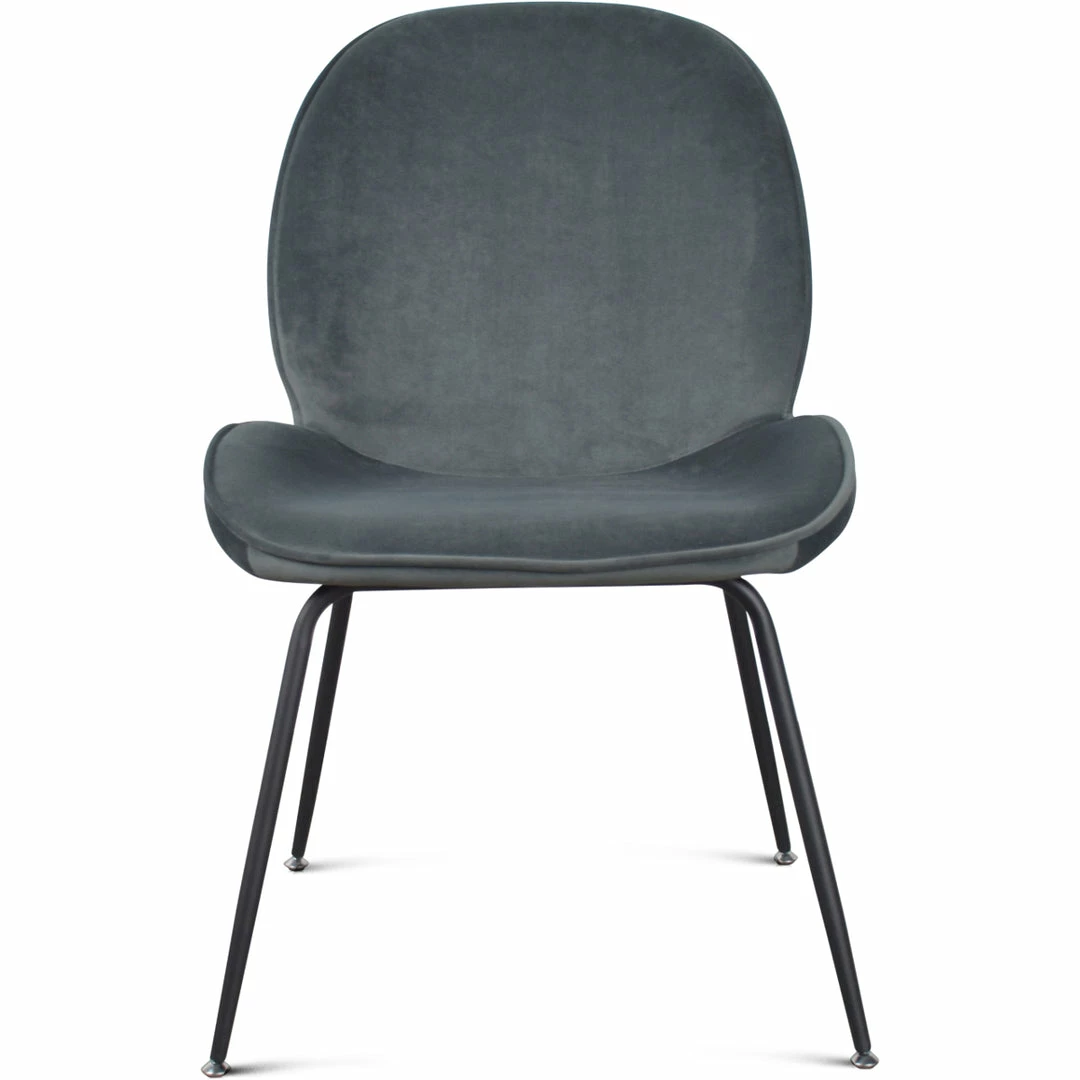 Inspired by mid-century Italian design, the Spidey Dining Chair embraces with petal-shaped curves and a comfortable, linger-worthy seat. Clad in soft, livable velvet, and set on angled black metal toothpick legs.