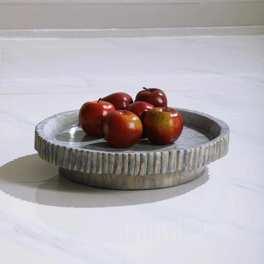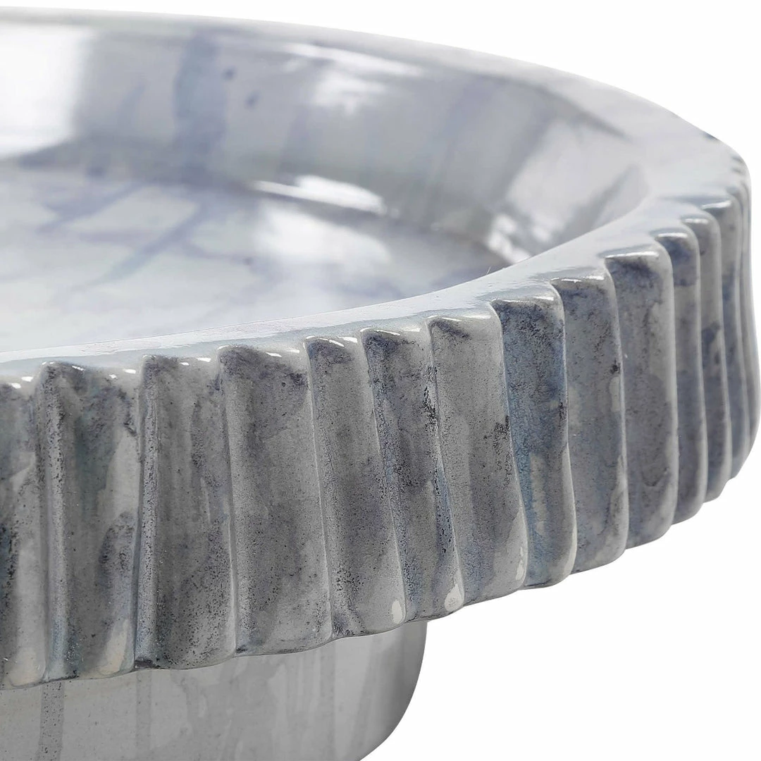 A contemporary take on classic blue and white ceramics, this bowl features a unique ribbed design with a hand applied cobalt blue glaze.