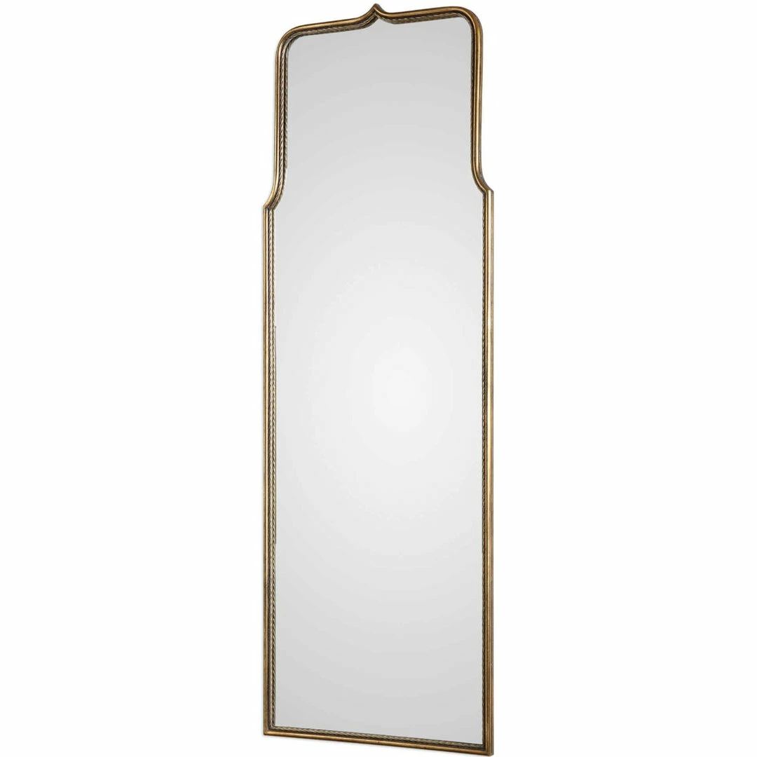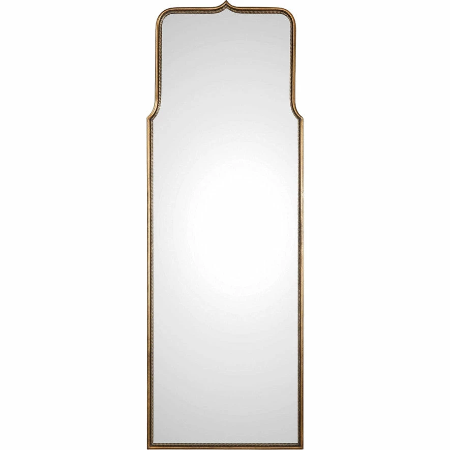Gracefully curved iron featuring a smooth exterior and a twisted interior, finished in a heavily antiqued gold leaf.