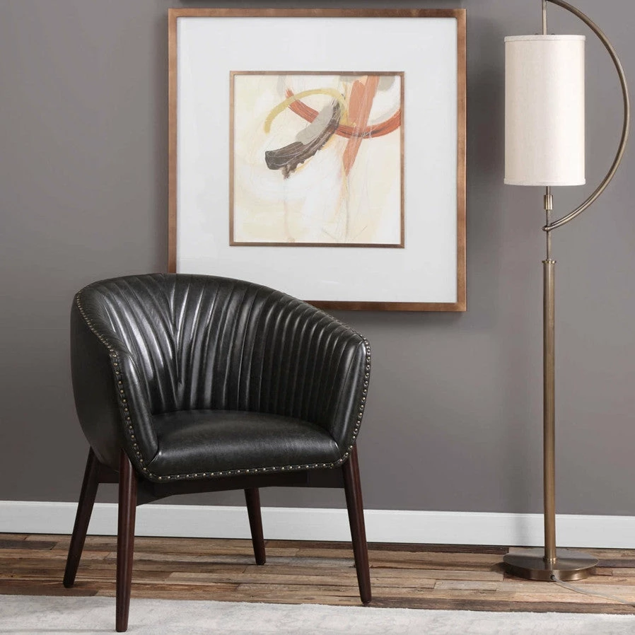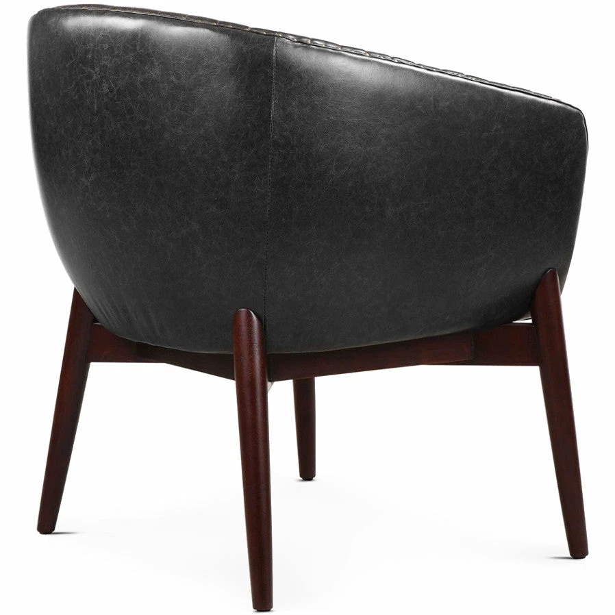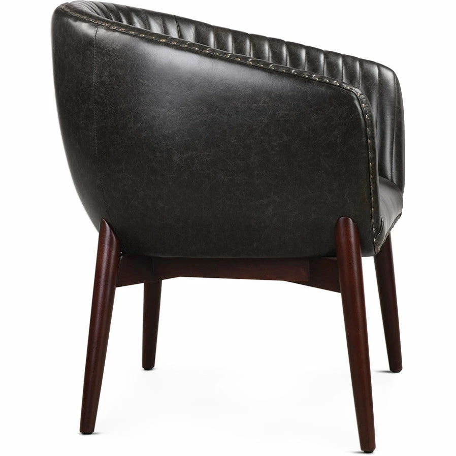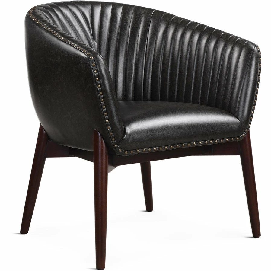 This High Style Design Features A Modernized Take On Scandinavian Style With “V” Shaped Channel-stitched Faux Leather, Distressed In A Casual Onyx With Contrasting Antiqued Brass Nail Head Trim. The Seat Rests In A Solid Oak Wood Frame Finished In A Smooth Walnut Stain.