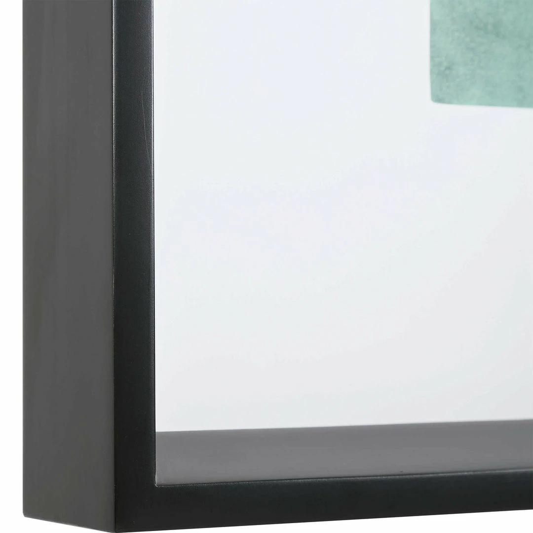 Based on an aerial view of a tropical coast, this glass framed print integrates shades of teal, aqua, and beige to create a stunning focal point, bringing contemporary coastal style into a design. The print is accented by a white painted mat and a simple matte black frame.