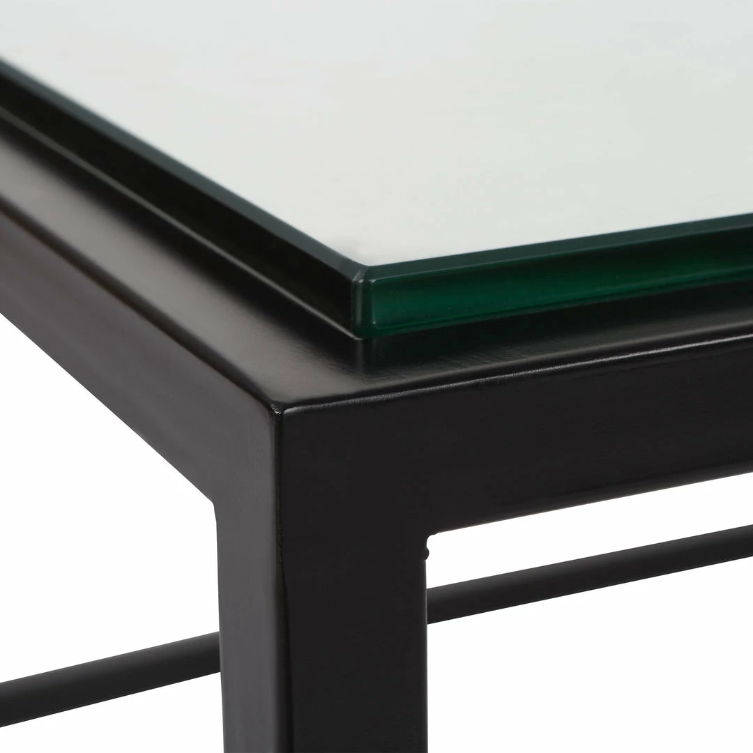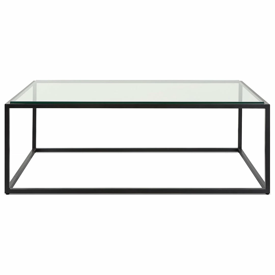 A complement to virtually any style, this modern coffee table sports a streamline iron frame finished in satin black paired with an inset tempered glass top.