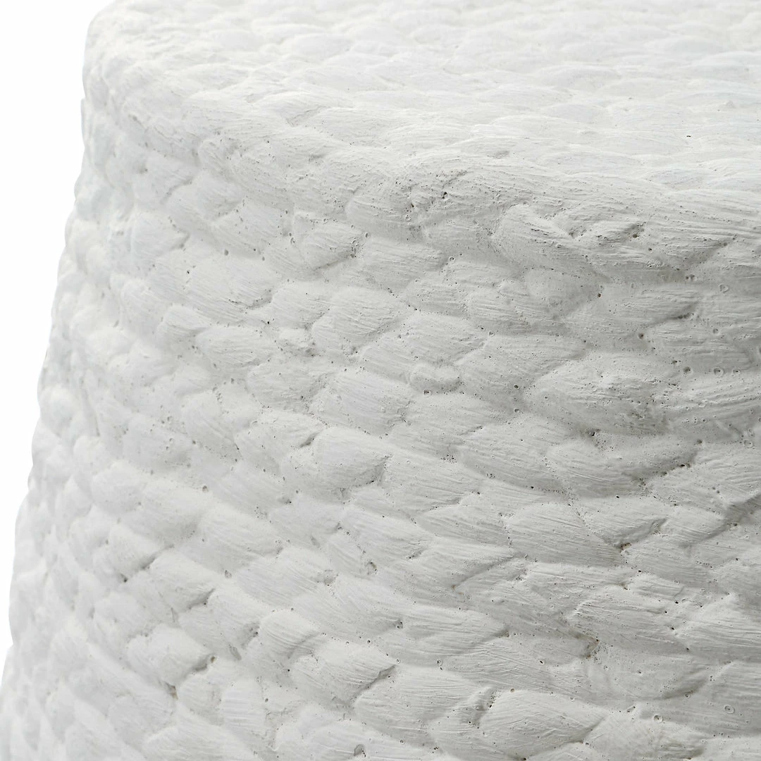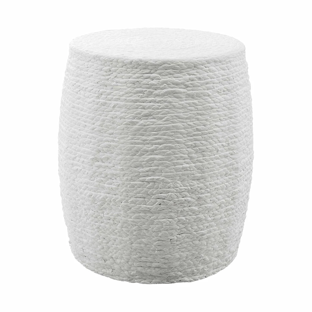 The perfect coastal-casual accent, the Island Palm stools showcases a braided straw wrap in a fresh white finish that complements nearly any style. This versatile piece can serve as a table, extra seating, or footrest.