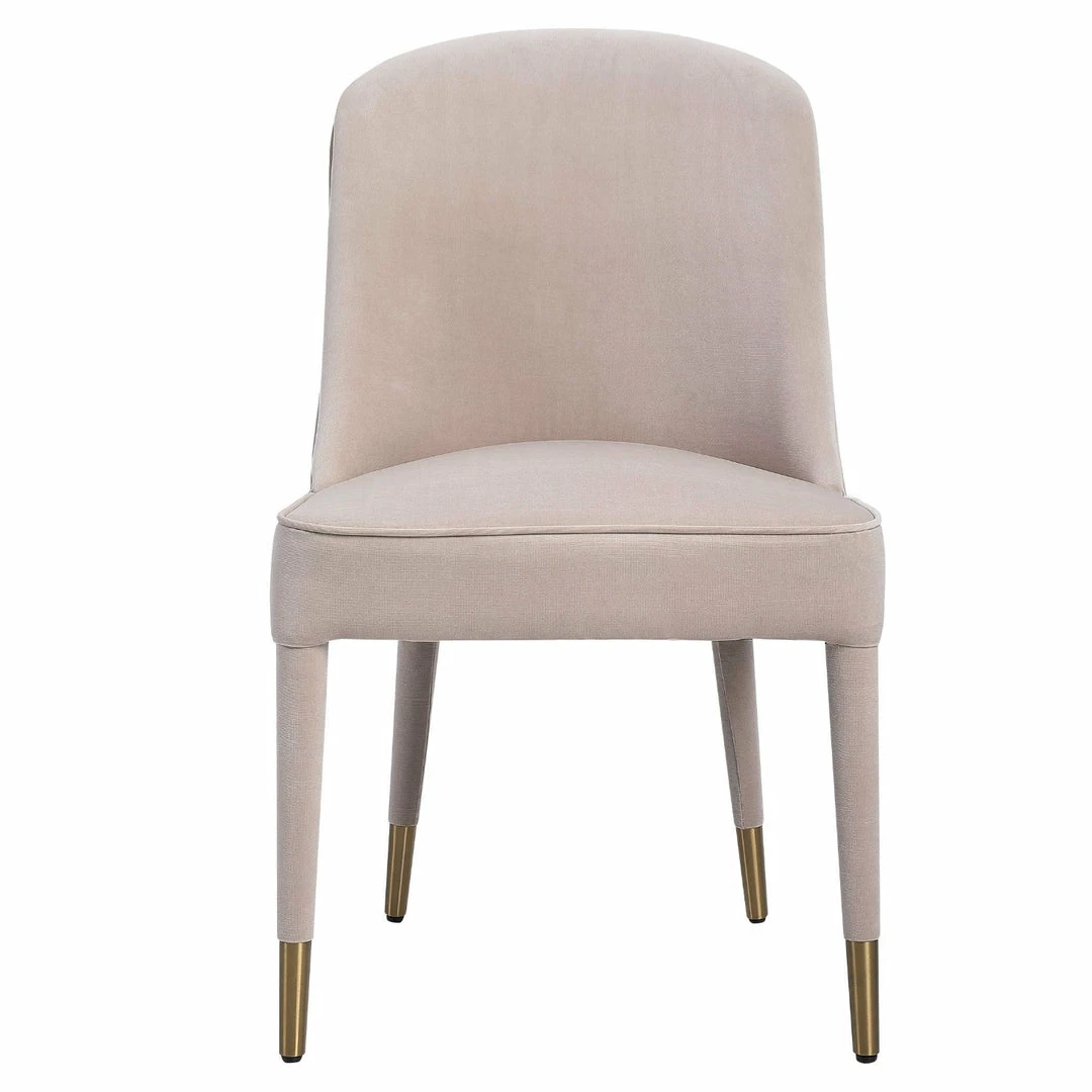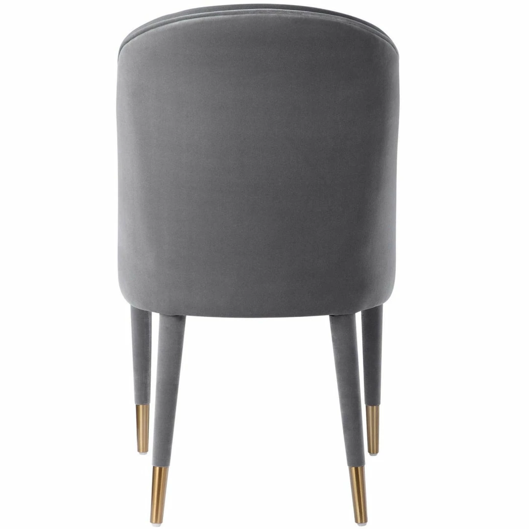 Perfect for modern dining, this armless dining chair features sleek lines covered in soft velvet with welted trim and accented with brushed brass ferrules.