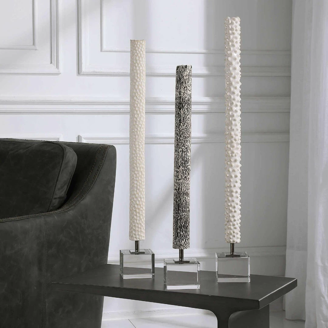 Ceramic constructed trio is inspired by global travels and exhibits a trendy black and white color story. Each is accented by polished chrome and crystal details.ย