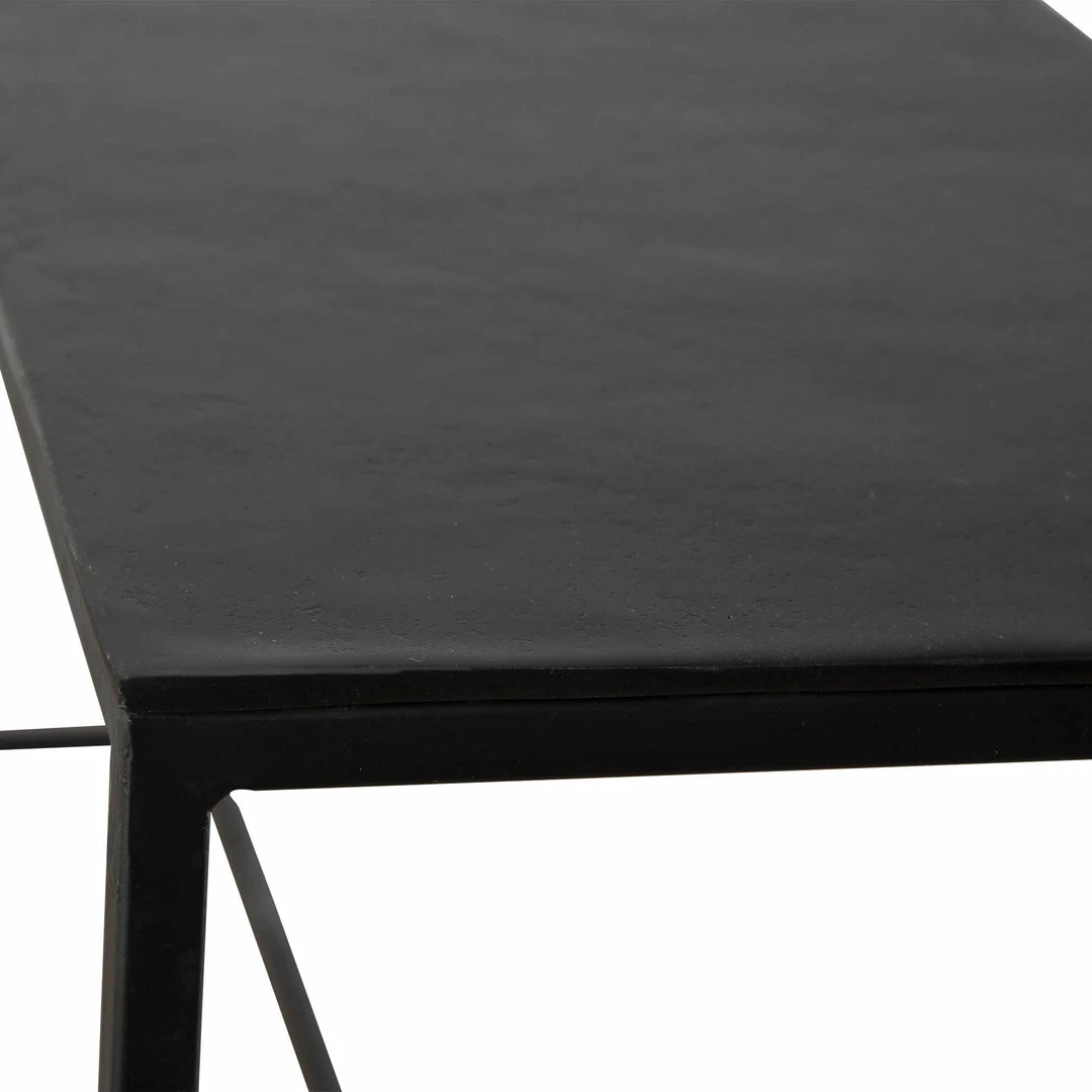 Simplistic industrial style console table, constructed in an aged black iron featuring a cast textured aluminum slab top finished in a plated antique bronze.
