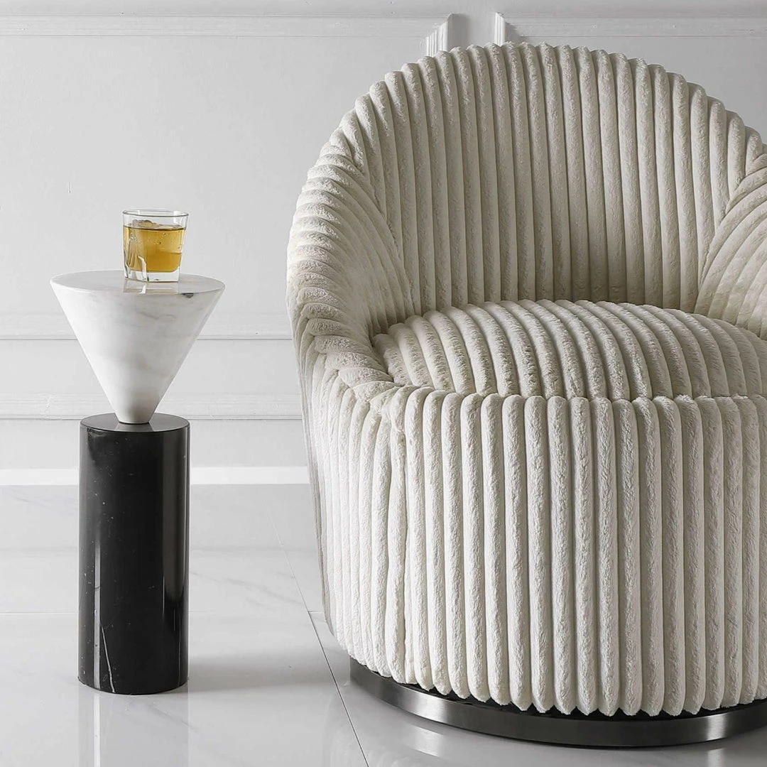 A juxtaposition of modern shapes, this stylish drink table features solid marble in luxurious black and white.