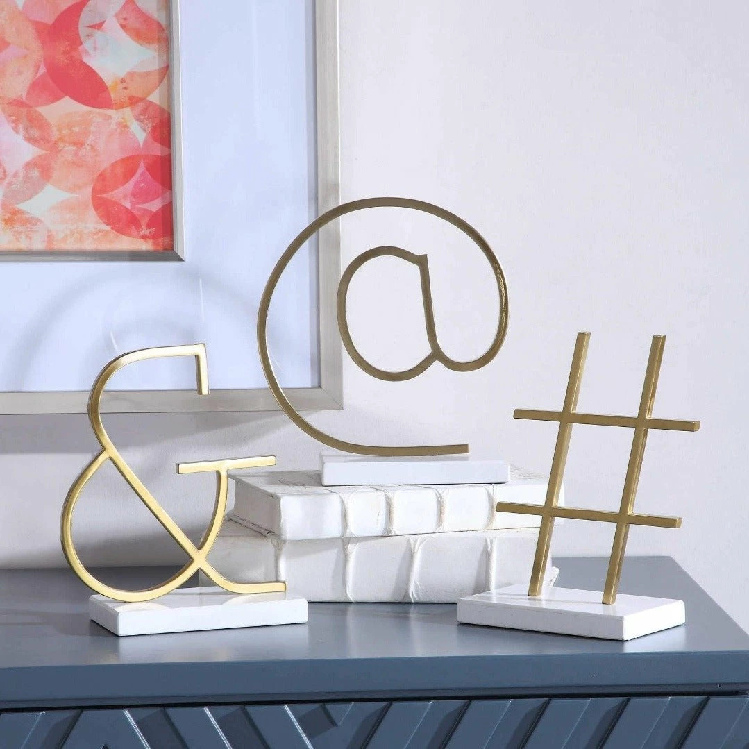 Style your shelves or desk, these trendy yet sophisticated brushed brass and white marble accessories are the perfect accent for any office.