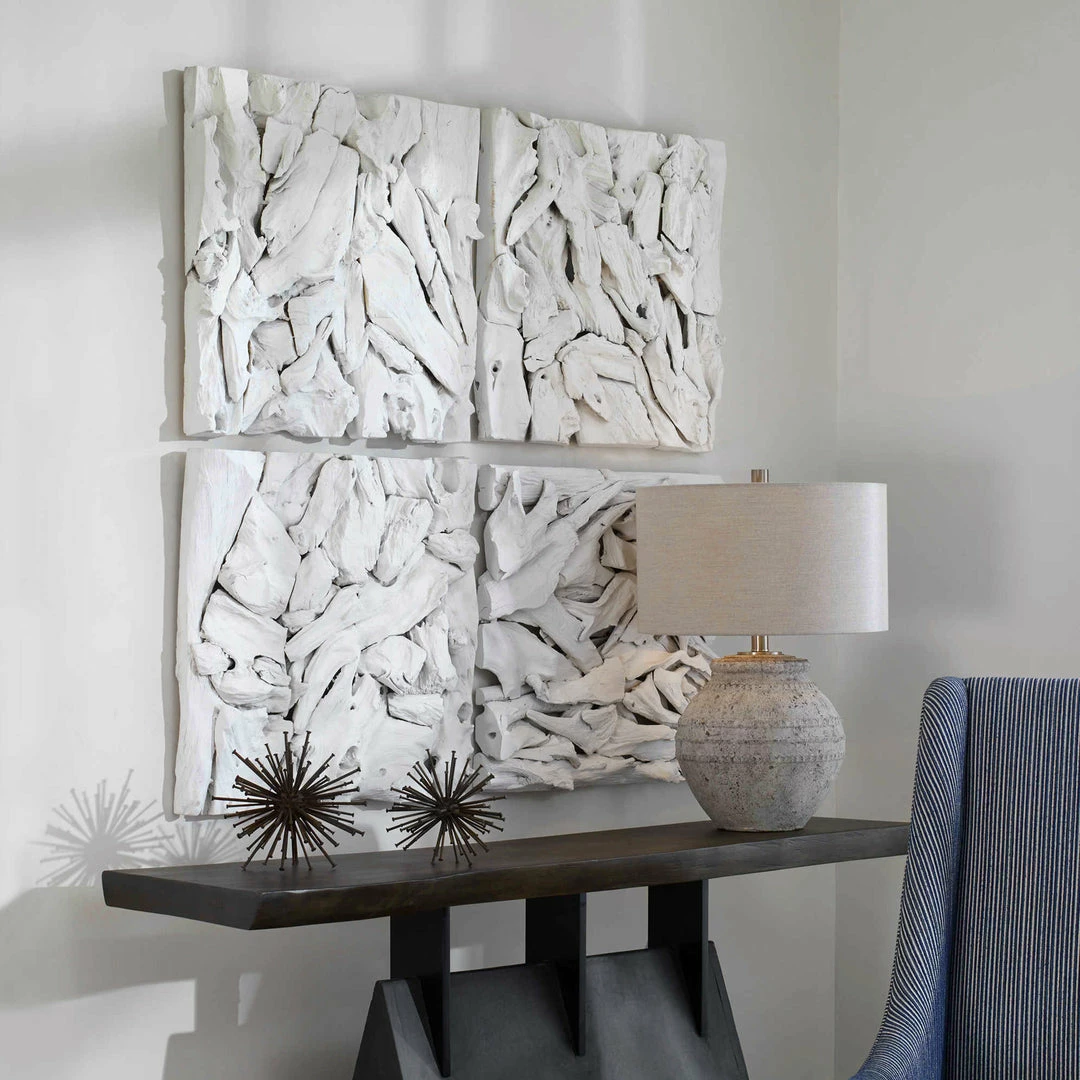 Artfully constructed from teak branches, this wood wall tile features a casual coastal style in a white washed finish.