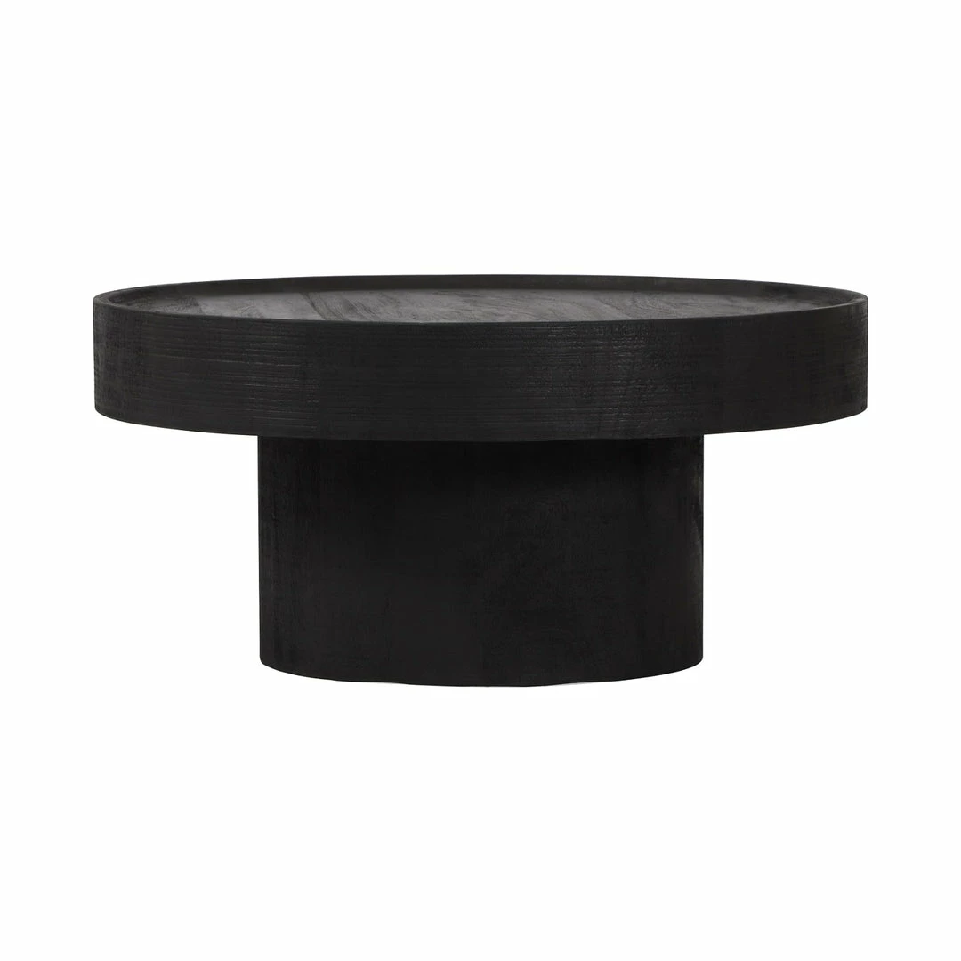 Crafted from mango wood and finished in matte black, the simply shaped round Bolt Table with tray style top brings a modern minimalist vibe to a space.