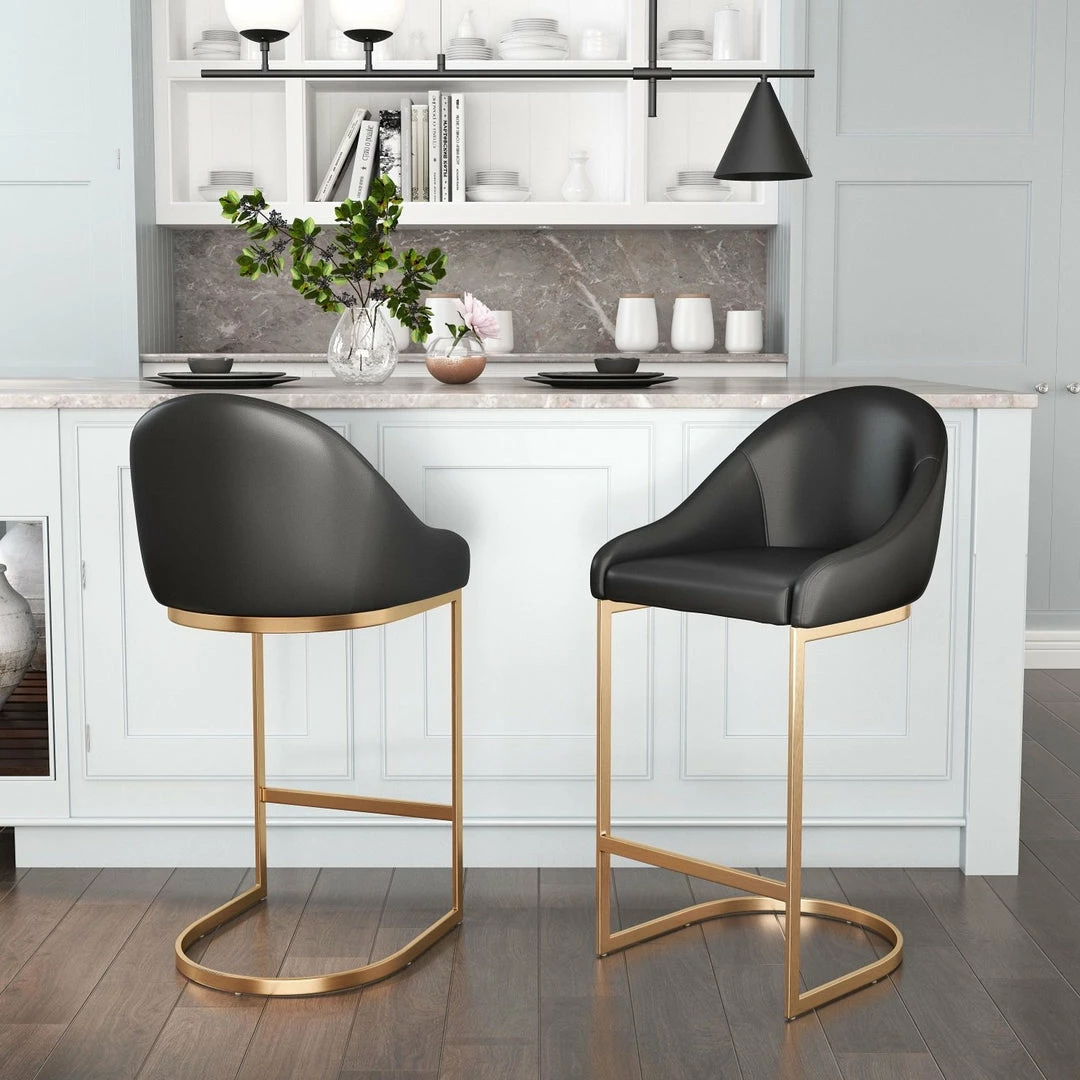 Modern deco in design, the gold electroplated steel classic U base and durable black leatherette are the perfect pairing for throwback lounge style and fresh sophistication.